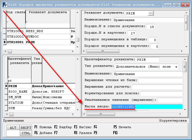 В верхней части окна данных располагаются собственно данные, в нижней части – панель функциональных клавиш,