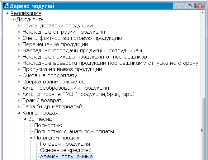 Реализация - Документы - Книга продаж - За месяц - По видам продаж - Авансы полученные