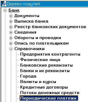 В разделе "Справочники" модуля «Банк» существует справочник "Периодические платежи".