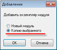 Поскольку часто бывает нужно иметь в системе несколько экземпляров модулей одного типа, то расмотрим пример как администратор системы может это сделать. Здесь речь пойдет о экземплярах уже имеющихся в системе модулей, т.к. создание нового типа модуля выходит за рамки этого описания.
